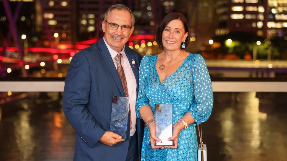 Video: They are interviewed sitting side by side in the lounge room. Michael has dark hair and a beard, Greg wears glasses. Text: "Greg and Michael Richardson."