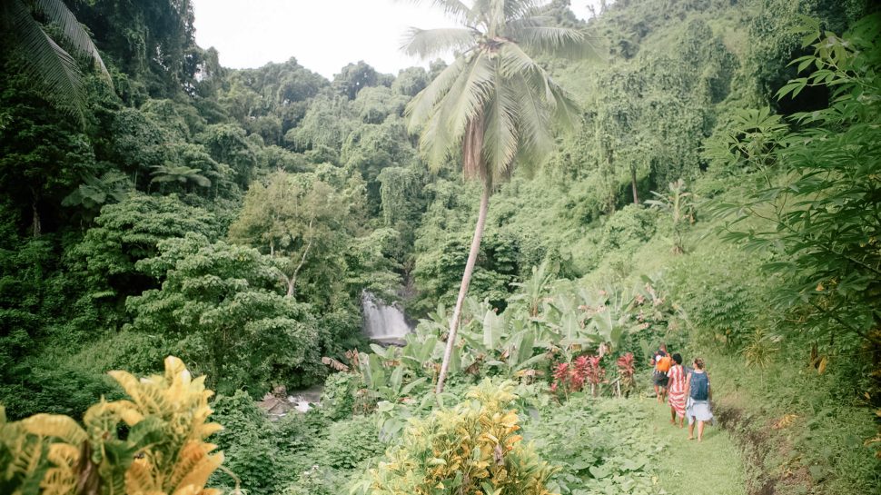 The woman took us to see Vuadomo Waterfall, and it turned out that the walk there was just as beautiful as the waterfall itself. At first glance, it just looked like a walking track through a lush, green jungle. But we soon discovered that the plants surrounding us were all there for a purpose. Passionfruit vines dangled overhead, there was wild ginger at our feet, and banana and plantain trees lined the path.
