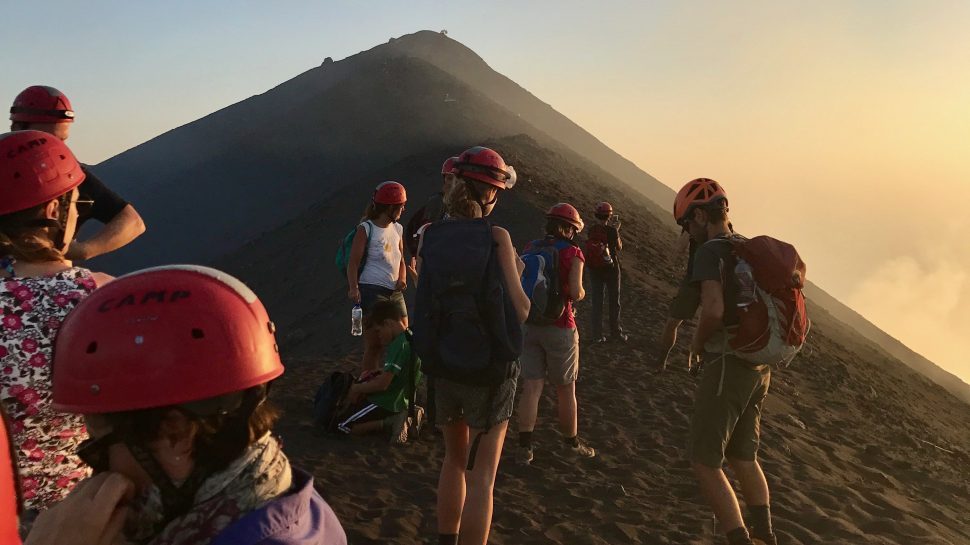 A distant rumble spurs us on. The volcano is awake. We’re hiking a living thing and now keen to reach the summit. Our destination is an outlook above the active craters, with a perfect view of the crackling lava being flung into the air below.